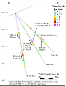 - Hole THN25-360 returned 18.50m of 3.39 g/t gold, 7.45 g/t silver, and 0.57% zinc from 90.50m depth.